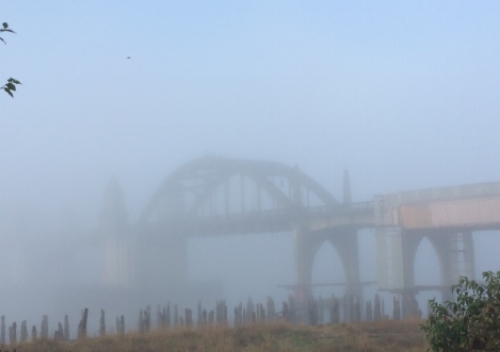 /The weather report for coastal Oregon this morning? Foggy. Every morning is 48* and the visibility is less than a half mile. Driving over the drawbridge to town is eerie and romantic—maybe the rest of the bridge isn’t even there anymore—it’s impossible to know for sure.
